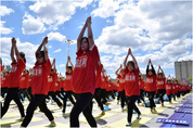 “자, 그럼 이제부터 수리아나마스까(태양경배자세)를 수련하겠습니다.” 10일 오전 9시 반경, 푸른 하늘에는 구름이 듬성듬성 떠있고 강렬한 해빛이 내리쬐고 있었다. 부르하통하강변 연길시만달광장, 연변요가협회의 무대에서의 리드와 함께 1000여명에 달하는 요가팬들은 붉은 유니폼을 입고 고요한 표정으로 요가의 기본동작중의 하나인 수리아나마스까를 수련하며 숭엄한 광경을 관객들에게 선보였다. 시계의 시침과 같이 12개의 동작으로 이루어진 수리아나마스까는 요가의 기본 자세중의 하나로 태양을 경배하는 모양을 본따서 만들어졌고 아침에 스트레칭용으로 아주 적합한 동작이라고 한다. 이날 이른 8시도 되기 전 연길시만달광장에는 1000여명의 요가애호가들이 자리에 모이며 1000명 요가 리허설을 준비했다. 주체육국에서 주최하고 연길시문체국과 주요가협회에서 주관하며 만달광장에서 협찬한 2017년 체육복권컵 전 주 천인요가대회가 펼쳐졌다. 연길시문체국 강명수 국장은 “1962년 6월 10일, 모택동 주석이 ‘체육운동을 발전시키고 인민체질을 증강하자’는 제사를 쓰고 우리 나라 체육사업의 발전방향을 확정한 날이다. 이날을 기념하고 대중 건강운동을 적극 추동하며 요가 문화를 광범위하게