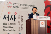 지난 21일 오후 광주 곤지암도자공원에서 열린 ‘2017 경기세계도자비엔날레 개막식’에서 남경필 경기도지사가 개회사와 개막선언 세레모니를 하고 ‘제10회 광주중소기업제품박람회 축포식’을 하고 있다. 경기세계도자비엔날레는 다음달 28일까지 진행된다./경기도 제공