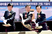 유정복 인천시장이 19일 구월동 소재 ‘MG새마을금고중앙회 인천지역본부회관 건립 기공식’에서 신종백 새마을금고중앙회장(사진 우측)과 첫 삽을 뜨는 퍼포먼스를 하고 있다. /인천시 제공