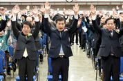 전성수 행정부시장이 13일 시청 대회의실에서 열린 ‘제98주년 임시정부수립 기념행사’에서 주요 인사들과 함께 만세 삼창을 하고 있다. /인천시 제공