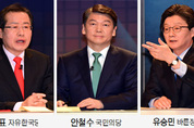 文·安, 주도권 시간 최다 배분 서로 치고받고 정면 충돌 연출 洪, 직설화법으로 전방위 전투 차떼기정당 대표·파렴치 비판받아 유승민·심상정, 洪에 각 세우기 安, 네 후보에 최다 질문공세 받아 조기 대선을 26일 앞둔 각 당의 대선후보 5명이 13일 오전 첫 TV 합동토론회에서 맞붙으며 본격적인 ‘장미 전쟁’의 시작을 알렸다. 이날 한국기자협회·SBS 초청으로 서울 상암동 SBS 공개홀에서 열린 토론회에서 후보들은 각자 상대 후보에 맹공을 펴며 유리한 고지를 점하는 데 온 힘을 쏟았다. 특히 양강을 형성하고 있는 더불어민주당 문재인 후보와 국민의당 안철수 후보는 이례적으로 거친 설전을 주고받으며 팽팽한 기 싸움을 벌였다. 자유한국당 홍준표 후보는 평소 자신의 ‘직설화법’을 유감없이 드러내며 다른 후보들에게 날을 세웠지만, 그만큼 다른 후보들로부터 많은 공격을 받으면서 ‘전방위전투’를 벌였다. 바른정당 유승민 후보와 정의당 심상정 후보는 다른 후보들과 차별화를 통해 존재감을 끌어올리는 데 집중했고, 이들은 특히 홍 후보와 각을 세우는 모습을 보였다