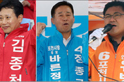 4·12 재보궐선거를 하루 앞둔 11일 입후보자들이 유권자들에게 지지를 호소하고 있다. 하남시장 후보자 더불어민주당 오수봉 후보, 자유한국당 윤재군 후보, 국민의당 유형욱 후보, 바른정당 윤완채 후보.(왼쪽부터) 포천시장 후보자 더불어민주당 최호열 후보, 자유한국당 김종천 후보, 바른정당 정종근 후보, 민중연합당 유병권 후보, 무소속 박윤국 후보.(왼쪽부터)