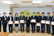 11일 오전 경기도 서울사무소에서 남경필 경기도지사가 국비확보에 기여한 국회의원 보좌관 및 비서들에게 국비확보 유공 표창장을 수여하고 기념촬영을 하고 있다. /경기도 제공