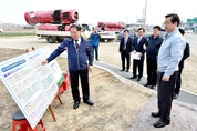 유정복 인천시장이 11일 강화군 초지대교 AI방역초소를 방문해 근무자들을 격려하고 방역현장을 점검하고 있다. /인천시 제공