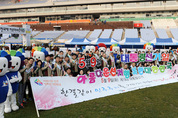 인천시선거관리위원회는 26일 인천문학경기장에서 유권자와 함께하는 ‘아름다운 선거, 행복한 대한민국’을 위한 다양한 홍보활동을 펼쳤다. 이날 활동은 깨끗한 선거를 만들기 위해 퍼포먼스 및 치어리더와 함께하는 아름다운 선거 체조, 행운의 룰렛게임 등 시민들이 직접 체험하는 이벤트로 진행됐다. 사진은 참가자들이 단체사진을 찍고 있는 모습. /인천시선관위 제공