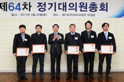 25일 오후 경기도 치과의사회관 대강당에서 열린 ‘경기도 치과의사회 대의원 총회’에서 이재율 경기도 행정1부지사가 유공자에 대한 시상을 하고 기념촬영을 하고 있다. /경기도 제공