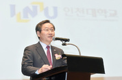 유정복 인천시장이 2일 인천대학교 송도캠퍼스에서 열린 ‘인천대학교 2017학년도 입학식’에서 축사를 하고 있다. /인천시 제공