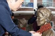 29일 오전 남경필 경기도지사가 광주 퇴촌면 나눔의 집을 방문해 나눔의 집 마당에 있는 위안부 소녀상과 나눔의 집에 계시다 먼저 돌아가신 할머니들을 추모하고 있다./경기도 제공