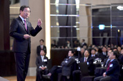 유정복 인천시장이 11일 쉐라톤인천호텔에서 열린 ‘제368회 새얼아침대화’에서 2017 시정방향에 대해 연설하고 있다. /인천시 제공