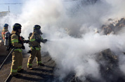11일 오전 양주시의 한 고물상에서 불이 나 소방대원들이 진화작업을 하고 있다. /양주소방서 제공