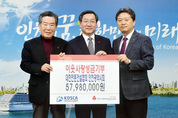 유정복 인천시장이 26일 시청 접견실에서 열린 ‘대한전문건설협회 성금 전달식’에서 대한전문건설협회 인천시회 지문철 회장으로부터 저소득층 집고치기 사업 성금을 전달받고 있다. /인천시 제공