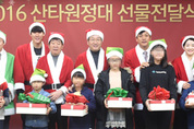 22일 오후 인천시청에서 열린 ‘2016 산타원정대 선물 전달식’에서 유정복 인천시장, 제갈원영 인천시의회 의장, 수영 선수 박태환 등 관계자들이 산타복장을 하고 어린이들과 함께 기념촬영을 하고 있다./인천시 제공