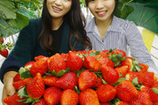 6일 오후 농촌진흥청 국립원예특작과학원에서 연구원들이 시험 연구용으로 재배 중인 국산 딸기를 수확하고 있다. 겨울철에 생산된 딸기는 봄철 딸기에 비해 당함량이 높고 신맛이 적어 품질이 뛰어나다./농진청 제공