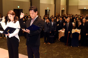 6일 하버파크호텔에서 열린 ‘2016 사회복지사대회 인천사회복지사의 밤’ 행사에서 사회복지사 대표가 사회복지사 선서를 하고 있다. /인천시 제공