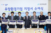 1일 경기도청 상황실에서 열린 ‘경기도 유망환경기업 지정서 교부 및 현판 수여식’ 후 이재율 도 행정1부지사가 유망환경기업 대표들과 기념촬영을 하고 있다./경기도 제공