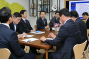 21일 오전 경기도청 도지사 집무실에서 남경필 경기도지사와 이재율 행정1부지사, 강득구 연정부지사, 김승남 제1연정위원장, 한길룡 제2연정위원장, 양근서 제3연정위원장, 김달수 제4연정위원장 등이 참석한 가운데 ‘주요 도정회의’가 열리고 있다./경기도 제공