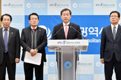 유정복 인천시장이 17일 시청 영상회의실에서 검단 스마트시티 협상 종료 기자회견을 하고 있다. /인천시 제공