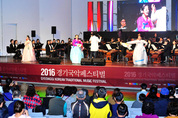 우리 내 가락과 소리의 멋과 흥을 느낄 수 있는 국악 한마당인 ‘2016 경기국악페스티벌’이 16일 오후 수원 제1야외음악당에서 성황리에 개최됐다. ▶▶관련기사 10면 올해로 2회째를 맞은 ‘경기국악페스티벌’은 경기도와 경기문화재단이 주최하고 경기신문이 주관해 경기도민들에게 우리 음악인 국악의 매력을 알리기 위해 마련됐다. 지난해 처음 열린 행사와 마찬가지로 올해 역시 비가 내린 궂은 날씨였지만 1천여명에 달하는 경기도민이 수원 제1야외음악당을 찾아 가을비가 내리는 한 밤에 어울리는 국악의 향취에 흠뻑 취했다. 주최측에서는 제1야외음악당 좌석인 796석이 모자라 간이의자 등를 동원해 넘쳐난 관중을 수용했다. 또 사물놀이와 국악기 체험, 판소리 배우기, 투호 등 전통놀이 체험 등을 즐겼다. 이날 식전 행사에는 (사)화성두레농악보존회의 공연이 펼쳐져 객석의 흥을 돋았다. 이어 사회자로 나선 국악인 남상일 씨의 ‘얼씨구’라는 추임새에 관객들이 ‘좋~다’고 받아치면서 시작된 본 공연은 경기도립국악단의 연주 ‘프론티어’를 시작으로 김태훈 단원이 나선 태평소 협주곡 ‘검은평화’와 최근순 명창과 하지아, 심현경 단원의 경기소리 공연이 이어졌다. 또 남상일, 송소희, 윤은