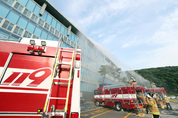 13일 오후 경기도청 운동장에서 열린 ‘2016 경기도청-경기도의회-소방서 합동 소방훈련’에서 경기도청 직원을 비롯한 관계자들이 훈련에 참가하고 있다. /경기도 제공