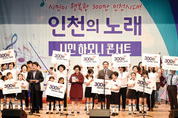 유정복 인천시장이 29일 인천여성가족재단에서 열린 ‘인천의 노래’ 시민 하모니 콘서트에서 시민들과 ‘연안부두’ 노래를 합창하고 있다. /인천시 제공