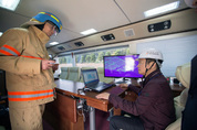 29일 오후 ㈜아모레퍼시픽 오산공장에서 열린 ‘2016년 긴급구조통제단 불시가동훈련’에서 남경필 경기도지사가 처리과정을 참관 하고 있다. /경기도 제공
