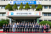 1일 열린 ‘경기일자리재단 출범식’에서 남경필 지사와 정기열(더불어민주당·안양4) 도의회 의장을 비롯한 참석 내빈들이 기념촬영을 하고 있다./경기도 제공