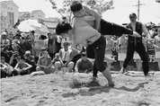 단오명절인 9일 연길시 모아산자락에 위치한 중국조선족민속원은 ‘연길시 2016년 단오명절 조선민족 민속문화전시회’ 축제로 수많은 주민들과 관광객들이 운집해 전통문화축제의 분위기를 한껏 돋구었다. 단오명절을 경축하기 위해 마련된 이번 행사는 단오명절의 의미를 되새기고 주민들과 관광객들간의 돈독한 화합을 다지는것을 주제로, 전통민속놀이와 전통민속체험을 ‘메뉴’로 정하고 이색적으로 펼쳐졌다. 이날 연길시 각 가두와 사회문예단체 및 학교들에서 련합으로 조선족민속문화문예공연을 펼쳤고 연길시 부분적 음식업체들에서는 현장서 배추김치담그기, 쑥떡만들기, 천명 비빔밥버무리기 등 조선족전통음식만들기 표현들을 선보이면서 관광객들의 입맛을 돋구었다. 한편 연길시 국가급무형문화재 운동종목인 그네 및 널뛰기 표현과 조선족전통씨름경기도 화끈하게 벌려 현장은 그야말로 축제의 분위기로 들끓었다. 이가운데 가장 이채로운것은 제4회 ‘방장군’컵 중국조선족씨름경기였는데 수많은이들의 발길을 멈추게 했다. 이날 오전 씨름장은 구경군들로 물샐틈 없이 둘러싸였고 좋은 자리를 차지하지 못한 일부 어른들은 아예 아이를 어깨에 태워가지고 씨름을 구경하기까지 했다. 게다가 씨름장 한켠에서 민속공연팀이 민속공