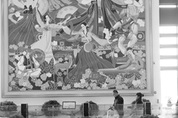 장도훈도시간철도의 개통으로 국경절기간 연변의 관광시장은 활기를 띠였고 고속철도를 리용해 국내 관광을 나선 시민들의 얼굴에는 만족이 가득하다. 또 이 광경을 흐뭇하게 바라보는 한사람-연변대학 미술학원 강종호교수(사진)가 있다. 그가 디자인한 대형벽화 ‘성세환가’, ‘전기신운’ 등 3폭이 연길서역에서 그간 수많은 관광객들을 맞아주고 배웅하고있기 때문이다. 12일, 연변대학 미술학원 사무실에서 강종호교수를 만났다. “작품전은 제한된 사람이 관람할수 있지만 고속철도역은 다르지요. 특히 우리 민족의 다양한 문화요소와 부호들이 담겨져있는 벽화를 오가는 승객들이 볼수 있다는것을 생각하면 요즘 굉장히 흥분돼요.” 연길서역 대합실에 걸려져있는 ‘성세환가’와 ‘전기신운’은 자매편으로 강종호교수의 총디자인으로 완성됐다. 이 두 작품은 예술구상이 정교하고 예술표현이 매우 섬세한바 연변의 아름다운 풍경, 조선족의 독특한 민속민풍, 심후한 민족문화내포를 유감없이 해석하였다. 대형벽화 ‘성세환가’는 너비 8.17메터, 높이 5.58메터이다. 벽화는 조선족장고
