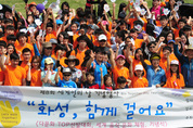 17일 오후 12시. 경기도청 운동장에 200여명의 다문와 가족들이 속속 모여들이 시작했다. 이들은 세계인의 날 프로그램 가운데 하나인 ‘수원화성 함께 걷기’ 프로그램 참가자들. 부모들은 혹여나 놓칠새라 고사리 같은 자녀들의 손을 꼭 부여잡고 주위를 둘러보며 행사장으로 향했다. 특히 중국, 필리핀, 베트남, 카자흐스탄 등 국내외를 망라한 지역주민들이 만나 향수를 달래는 모습이 눈길을 끌었다. 또 고향 사람과 만난 반가운 마음에 서로의 손을 들어 마주치고는 탄성을 지르며 얼싸안는 광경도 간혹 눈에 띄었다. 아이들은 너나 할 것없이 운동장 한켠에 마련된 간이 놀이기구에 빠져 폴짝폴짝 뛰며 자지러진 웃음을 쏟아냈고, 부모들도 연신 미소 가득한 얼굴로 동심에 흠뻑 젖어들었다. 출발시간인 오후 2시, 참가자들은 진행요원의 지시에 따라 간단한 사전 준비운동으로 몸을 풀었다. 흥겨운 음악에 맞춰 서로의 엉덩이와 발바닥을 마주치는 등 익살스런 동작에 한껏 즐거워 했다. 20여분간의 준비운동을 마친 뒤 경기도의회 김광철(새·연천) 여성가족교육협력위원장의 출발선언과 함께 도청후문을 나섰다. 친구들과 삼삼오오 모여 수다를 떠는가 하면, 아이를 목마 태우고 걷는 등 출발하는 모습