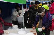 마라톤 마니아에 순두부 제공 ○…지난 달 28일 쌀쌀한 날씨 속에 수원종합운동장에서 펼쳐진 2015 경기국제하프마라톤대회에서 마라톤 마니아들에게 다양하고 따뜻한 먹거리가 제공돼 눈길을 끌었다, 수원시 새마을부녀회와 바르게살기위원회 소속 회원 10여 명은 이날 이른 아침부터 대회 참가자들에게 따뜻한 순두부를 제공해 마라톤 마니아들의 큰 호응을 얻었다. 새마을부녀회는 5천여명이 넘는 인원이 먹을 수 있도록 많은 양의 순두부를 준비했지만 쌀쌀한 탓에 참가자들의 큰 인기를 끌면서 시상식이 열린 오전 11시쯤 순두부가 동이나 이후 결승선을 통과한 선수들은 맛을 볼 수 없을 정도로 불티나게 소비됐다. 지역사회에 도움이 되고자 이번 대회에 처음으로 참가한 새마을부녀회는 순두부 외에도 둥글레차, 커피 등 따듯한 차도 함께 제공했다. 또 숨쉬는 한의원에서는 쌍화차 등 진한 한방차를 선수들에게 제공해 순두부와 더불어 인기를 받았다. 박진이(59) 새마을부녀회장은 “추운 날씨에 참가자들이 잠시나마 몸을 녹일 수 있도록 따뜻한 먹거리를 제공하게 돼 너무 뿌듯하고 보람을 느낀다”며 “올해 처음으로 마라톤대회에 나와 봉사활동을 하게 됐는데