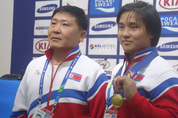북한 역도가 세계 신기록 행진을 이어가며 연일 화제가 되고 있는 가운데 여자 역도 75㎏급 김은주(25)가 28일 송도 메인프레스센터(MPC)에서 기자회견을 가졌다. 지난 25일 역도 여자 75㎏급 용상에서 164㎏을 기록하며 세계신기록(종전 163㎏)을 세우며 금메달을 딴 김은주는 이날 인터뷰에서 “훈련 부담도 크고 부상도 따랐지만, 원수님께 기쁨을 드리고자 최선을 다했다”고 말했다. 김은주는 향후 계획을 묻는 질문에 “역도는 북한에서 인기가 높아 좋은 성적을 거두면 영웅이 된다”며 “원수님께 많은 사랑을 받아 어려움을 극복할 수 있었으니 더 나은 성과로 보답하겠다”고 답했다. 이어 “어디서 경기를 하던 우리에게는 특별한 것이 없다”면서 “남측도 같은 한민족으로 응원을 해줘 그 기대에 보답하는 마음으로 경기에 임했다”고 덧붙였다. 한편 최농균 북한 역도 감독은 북한이 역도에서 강세를 보이는 이유에 대해 하체의 힘을 꼽았다. 최 감독은 “각 나라마다 훈련 방법이 있겠지만, 우리 조선 민족은 하체 힘이 세다. 이것이 금메달을 딴 이유&rdquo
