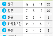 대한민국이 인천 아시안게임에서 대회 초반 경기·인천 소속 선수들의 선전으로 5회 연속 종합 준우승을 향한 힘찬 첫 발을 내딛었다. 한국은 대회 이틀째인 21일 현재 금 12개, 은 10개, 동메달 9개로 중국(금 12·은 9·동 11)을 은메달 1개 차로 따돌리고 종합 1위를 달렸다. 이날까지 한국이 딴 메달 31개 중 경기·인천 출신들이 개인전과 단체전에서 회득한 메달은 16개로 전체 메달의 51.6%에 해당된다. 한국은 대회 첫 날인 20일 강화 고인돌체육관에서 열린 우슈 남자 장권에서 이하성(수원시청)이 9.71점을 받아 우승을 차지한 데 이어 인천 드림파크 승마장에서 열린 승마 마장마술 단체전에서 황영식(세마대승마장), 김균섭(인천체육회), 김동선(갤러리아승마단), 정유연(청담고)이 팀을 이뤄 71.73점으로 정상에 올랐고 사이클 남자 단체 스프린트에서도 강동진(울산시청), 임채빈(상무), 손제용(한국체대)이 출전해 59초616으로 금메달을 획득했다. 또 펜싱 여자 사브르 개인전에서 이라진(인천 중구청)이 김지연(익산시청)을 15-11로 꺾고 1위에 올랐고, 펜싱 남자 에뻬 개인전에서도 정진선(화성시청