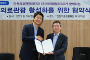 인천의료관광재단은 지난 19일 ㈜아이패밀리SC와 의료관광 활성화를 위한 업무협약을 체결했다고 20일 밝혔다. 이번 협약으로 양 기관은 지역특화 의료서비스와 웨딩검진 프로그램, 건강검진 캠페인 등을 위해 상호협력키로 했다. ㈜아이패밀리SC는 지난 2000년 8월 설립된 웨딩서비스 전문 기업으로, 연예인 스타마케팅으로 한류 웨딩트랜드를 이끌고 있다. 김봉기 인천의료관광재단 대표는 “이번에 출시하는 결혼 전 건강검진 상품은 인천의 지리적 위치를 반영해 신속히 의료서비스를 받을 수 있다”며 “향후 해외 신혼부부를 위한 유치사업에도 아낌없이 지원하겠다”고 말했다. 김태욱 아이패밀리SC 대표는 “웨딩과 건강·뷰티 부분을 결합한 상품이 해외에서도 활발한 판매가 이뤄지도록 홍보방안을 모색하겠다”고 말했다. % yhm@