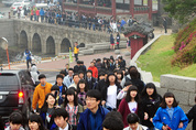30일 오전 수원화성행궁 광장에서 열린 ‘2011 가족과 함께… 친구와 함께… 수원화성돌기’ 행사에서 참가한 학생들이 꽃길을 따라 줄지어 걷고 있다./특별취재반