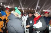 남경필 경기도지사가 9일 오후 강원도 평창올림픽스타디움에 도착해 도민 및 경기도장애인체육회 관계자들과 인사를 나누고 있다./경기도 제공