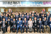 8일 열린 2018년 제5기 광주클린농업인대학 입학식에서 참석자들이 단체사진을 찍고 있다./광주시 농업기술센터 제공