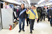 유정복 인천시장이 26일 ‘국가안전대진단 민관합동점검’을 위해 부평역세권 지하상가 현장을 방문하고 있다. /인천시 제공