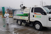 NH농협 광주시지부가 18일 광주지구축산농협 공동방제단과 함께 AI 방지를 위한 방역 활동을 실시하고 있다./NH농협 광주시지부 제공