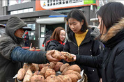 양력설 기간 수많은 해내외 관광객들이 우리 주에 와 새해를 맞이했다. 지난해 12월 31일, 안휘성에서 온 관광객들이 연길 서시장부근에서 ‘겨울의 짝꿍’ 동북의 군고구마를 사고 있다. /김유미 실습생