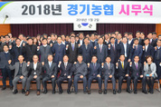 경기농협은 2일 대회의실에서 중앙회, 은행 등 직원 100여명이 참석한 가운데 2018년 시무식을 개최했다. 이날 참석자들은 순국선열 및 농업과 농촌 발전을 위해 힘쓰다 순국하신 농업인에 대한 묵념을 시작으로 새해를 맞아 악수와 격려를 통해 신년하례식을 갖고, 새로 전입한 직원들과 덕담을 건네며 서로간의 건강과 행복을 기원했다. 남창현 본부장은 신년사를 통해 지난 1년간 직원들이 이룬 값진 성과를 치하하고, 2018년 새롭게 추진해 나가고자 하는 경영방향에 대해 전달했다./경기농협 제공