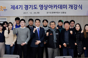 경기도 공유경제 대표 사업 중 하나인 ‘제4기 경기도 영상 아카데미’가 28일 오후 경기도청 북부청사 상황실에서 개강식을 가졌다. 사진은 참석자들이 기념촬영을 하고 있는 모습./경기도 제공