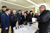 홍미영 부평구청장이 29일 ‘중소기업 우수제품 전시 및 판매장’을 방문해 관계자들을 격려하고 있다. /부평구 제공