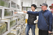 훈춘시 90세대 허위씨는 2014년 항주에서 귀향해 소액대부금을 신청하여 15만원을 기반으로 해산물상점을 오픈했다. 허위씨는 항주, 소주, 남경 등 지역을 주판매지역으로 끊임없는 노력과 성실경영으로 현재 년 매출이 300만원에 달한다. 사진은 15일, 허위(왼쪽 사람)씨가 로씨야 고객에게 해산물을 소개하는 모습이다. /심연 기자