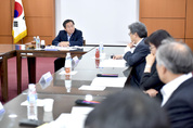 유정복 인천시장이 29일 시청 장미홀에서 열린 '제85차 인천발전연구원임시이사회' 제15대 인천발전연구원장 선출에서 이사들의 의견을 듣고 있다.