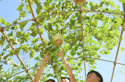 "엊그제만 해도 열대야에 잠 못 들곤 했는데..." 처서인 23일, 수도권매립지를 찾은 어린이들이 주렁주렁 열린 박을 만져보며 가을을 느끼고 있다.
