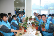 현대제철 인천공장은 디딤쇠 봉사단원 100명이 지난 21일 지역사회 취약계층 가정에 공기정화 식물을 전달하기 위해 친환경 토피어리 만들기 봉사활동을 펼쳤다고 23일 밝혔다. 이날 만든 친환경 토피어리 200개는 인천 동구 지역아동센터 아동 및 인천 거주 다문화가정에 전달될 예정이다./박창우기자 pcw@