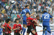 수원 삼성이 화려한 골 폭죽으로 ‘라이벌’ FC 서울을 대파하고 비상의 날개를 활짝 폈다. 수원은 2일 수원월드컵경기장에서 열린 삼성하우젠 K-리그 7라운드 홈경기에서 곽희주의 선제골과 김대의의 결승골, 백지훈의 쐐기골에 힘입어 김은중이 한골을 만회하는데 그친 FC서울을 3-1로 완파했다. 상암벌에서 당했던 치욕의 1-4 패배를 ‘3차 라이벌 대전’에서 고스란히 돌려준 수원은 2승2무3패를 기록하며 승점 3점을 추가했다. 수원은 서동현과 에두를 최전방에 세우고, 공격형 미드필더로 나선 이관우가 김남일, 백지훈과 호흡을 맞췄다. 또 마토와 곽희주, 송종국, 양상민이 환상의 수비라인을 구축한 가운데, 수호신 이운재가 골문을 사수했다. 반면 서울은 주전을 대거 제외하고 어린 선수들을 주축으로 김은중과 정광민이 공격의 일선에 나섰고, 기성용과 아디가 중원장악에 나섰다. 수원은 전반 3분 오른쪽 측면에서 얻은 코너킥을 서동현이 헤딩 슛으로 연결한 것을 신호탄으로 전반 15분 김남일이 아크 오른쪽에서 오른발 중거리 슛으로 서울의 골문을 위협했다. 또 19분 양상민이 얻은 프리킥을 이관우가 오른발로 골문을 향해 날카롭게 감아 올