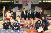 ‘대학 씨름의 최강’ 경기대가 제39회 회장기전국장사씨름대회 단체전에서 다시한번 황소 트로피를 들어 올렸다. 경기대는 26일 이천시민회관에서 열린 대학부 단체전 결승에서 ‘강호’ 인하대를 4-0으로 완파, 지난 1월 열렸던 대학장사씨름 1·3차대회 단체전 우승에 이어 올 시즌 3관왕에 오르는 기염을 토했다. 4강에서 단국대를 4-0으로 완파한 경기대는 결승 첫 판에서 이준호가 뒤집기되치기와 들배지기로 인하대 이승우를 눌러 기선을 제압했다. 경기대는 이어 경량급 최강자 임태혁이 잇따른 들배지기로 상대 정철우를 모래판에 내리 꽂아 2-0을 만든 뒤 새내기 최정만이 들어밀어치기와 들배지기로 인하대 오광수를 제압하며 3-0으로 달아났다. 우승에 1승만을 남겨 둔 경기대는 이어 출전한 문형석이 잡채기로 첫 판을 따낸 뒤 들배지기로 또다시 상대 윤승민을 눌러 승부를 결정 지었다. 초등부 단체전에서는 용인 양지초가 4강에서 인천 용일초를 4-1로 누르고 결승에 진출, 울산 평산초를 4-3으로 제압한 서울 동명초와 우승을 놓고 맞대결을 펼치게 됐다. 나승원과 김경민이 안다리와 들배지기로 상대 김송현과 이한영을 잇따라