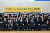 대우증권탁구단이 안양 지역의 탁구 꿈나무 육성을 위해 지원금을 전달했다. 대우증권탁구단은 17일 안양 호계체육관에서 김진걸 탁구단장(상무이사)과 김상문 안양시청 복지문화국장, 부단장 김창간 부장, 이신규 안양시탁구협회장, 주현재 만안초 교장, 한민희 범계초 교장, 송승근 안양여중 교장, 이윤로 안양여고 교장을 비롯해 선수와 동호인 등 100여명이 참석한 가운데 꿈나무 육성 지원금 전달식을 갖고 관내 탁구부를 운영 중인 4개교에 총 500만원의 육성금을 전달했다. 이번 꿈나무 육성 지원금 전달식은 한체대 체육관을 사용하던 대우증권탁구단이 윤기영 안양여고 감독과 안양시의 권유로 지난 2월부터 호계체육관을 연습 장소로 사용하게 됐고, 지역의 탁구에 대한 열기에 감탄해 꿈나무들의 기량 향상 및 지역의 탁구 활성화를 위해 마련했다. 김진걸 단장은 “첫 술에 배부르지 않듯 금액보단 꿈나무 육성을 위해 첫 단추를 잘 꿰었다는데 의미가 크다”며 “비록 큰 금액은 아니지만 안양 지역 탁구 꿈나무 육성에 도움이 되길 바란다. 앞으로 예산을 확대 등을 통해 지속적으로 꿈나무 육성 및 지역의 탁구 활성화에 노력하겠다”고 밝혔다. 이어 김