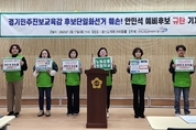 안민석 경기도교육감 예비후보 측은 17일 전국교육공무직본부 경기지부를 공직선거법 위반 혐의로 고발했다고 17일 밝혔다. 안 예비후보 선거대책위원회는 이날 경기남부경찰청에 고발장을 내고 경기도선거관리위원회에는 긴급조사요구서를 제출했다. 선대위는 이날 보도자료를 통해 "자문 변호사단 법률검토 결과 교육공무직본부 경기지부의 행위는 단체의 선거운동 및 선거운동 사조직 설치 행위로 명백한 공직선거법 위반에 해당한다는 판단을 받았다"고 했다. 앞서 안 예비후보 측 이동렬 선대위장은 전날 기자회견을 열고 "단일화 추진 기구에 속한 교육공무직본부 경기지부가 특정 후보의 선거인단을 조직적으로 모집하고 있는데 이는 대단히 엄중한 상황으로 해당 단체의 퇴출과 선거법 위반 혐의 고발이 필요하다"고 주장한 바 있다. 교육공무직본부 경기지부 측은 즉각 반발하고 나섰다. 이들은 이날 경기도의회에서 기자회견을 열고 "우리의 선거인단 모집이 선거법 위반이면 단일화 추진 기구인 경기교육혁신연대에 참여한 100개가 넘는 단체와 개인의 단일화 활동 자체가 모두 위반이 되고 이는 4년마다 진행된 단일화 경험을 부정하는 것"이라고 주장했다. 이어 "정당한 정치활동을 선관위 고발로 협박하는 안 예비